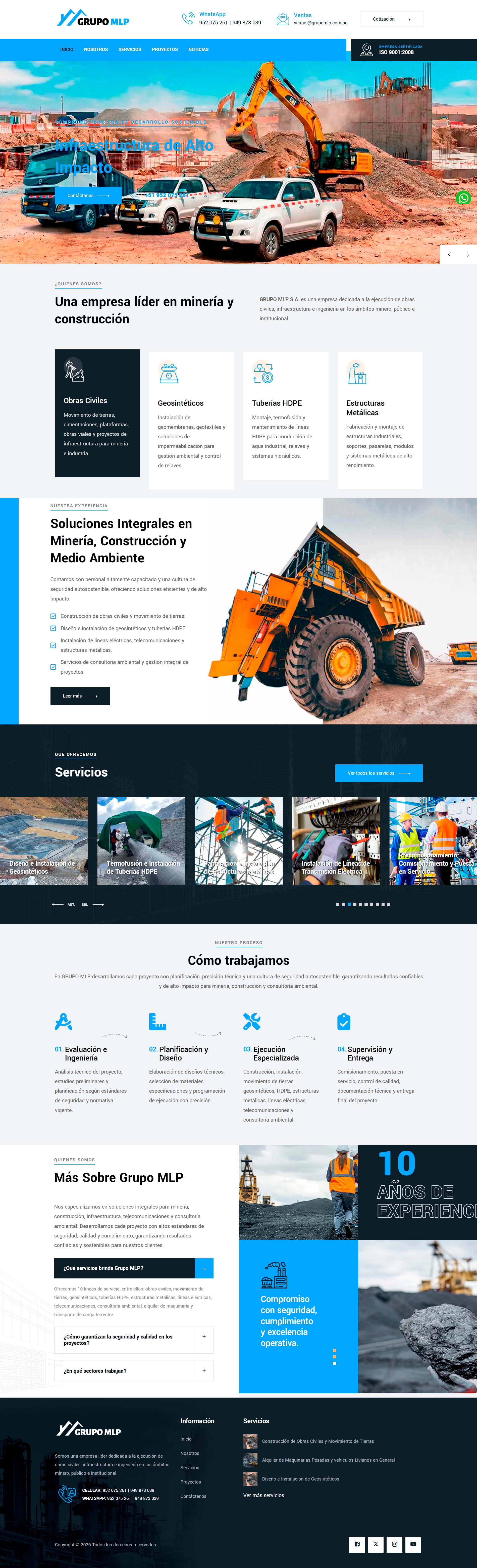 GRUPO MLP S.A. es una empresa dedicada a la ejecución de obras civiles, infraestructura e ingeniería en los ámbitos minero, público e institucional.